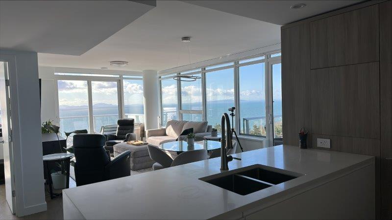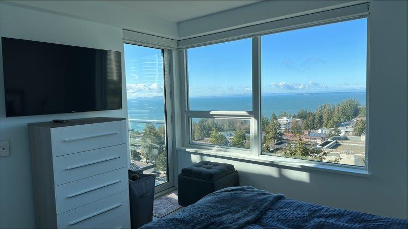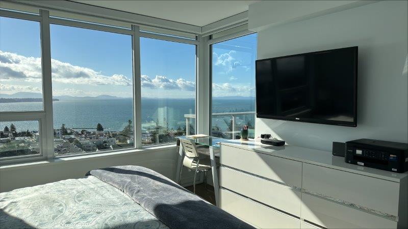 Enjoy Breathtaking South Facing & Southwest Facing panoramic ocean views from this spacious 1,100 sq. ft. corner unit, featuring two private deck-one south-facing and one west-facing-for ultimate sunlight and vistas. High-End Features Include: Modern premium finishes throughout, Bosch kitchen appliances, Radiant floor heating in the ensuite, Two bathtubs + one luxurious walk-in shower, Dual-zone air conditioning, and heating with Nest thermostat. Additional Perks:Two side-by-side parking spaces, Private storage locker + bike storage, Gas and water included in rent,Building Amenities: Rooftop terrace with stunning ocean views, Outdoor pool and hot tub, Indoor health club with fully equipped gymPrime location: just steps from White Rock Beach, restaurants, shops, and public transit. No pets. No smoking or vaping. Mandatory Tenant Insurance. Rental Property Address: 1008-15165 Thrift Avenue. Property Manager: Bernadine Nielsen