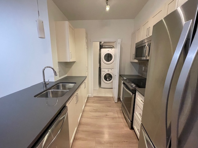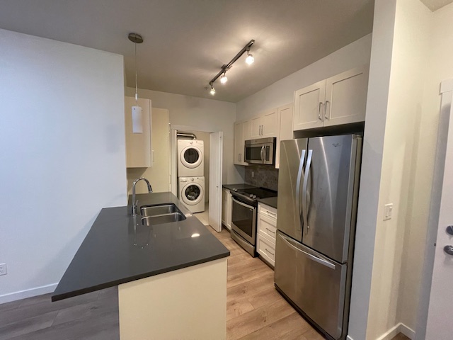 Walk out level 1 unit 2 bed plus den area and 2 bath at The Heights in desirable Morgan Crossing. This 865 sq. ft. home features a spacious primary bedroom with walk-in closet, 5-piece ensuite, the open-concept living and dining area offers a flexible layout. covered patio face the courtyard -green space and a community garden. Includes in-suite laundry, storage, 1 parking spot. Steps to shops, schools, and transit—urban living in a peaceful setting. No smoking or vaping. No pets. Tenant insurance mandatory. $2150.00 per month plus utilities. Available Now. Rental Property Address: 101-2855 156 Street. Property Manager: Jenny Chen