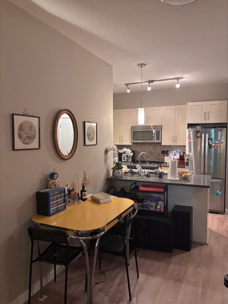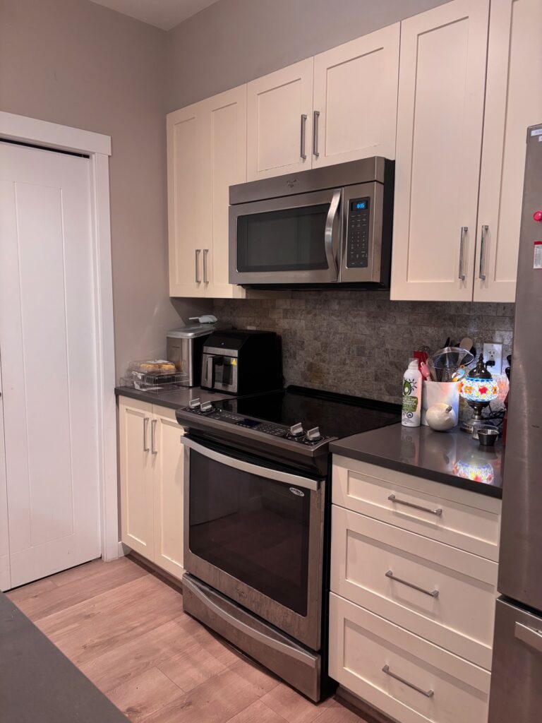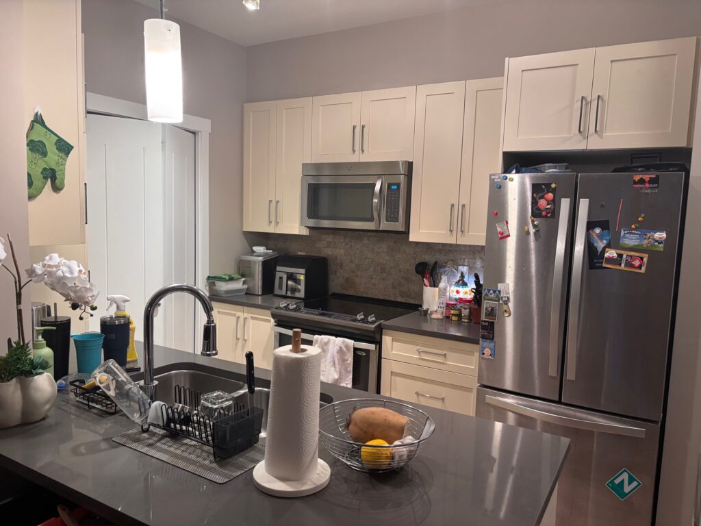 Walk out level 1 unit 2 bed plus den area and 2 bath at The Heights in desirable Morgan Crossing. This 865 sq. ft. home features a spacious primary bedroom with walk-in closet, 5-piece ensuite, the open-concept living and dining area offers a flexible layout. covered patio face the courtyard -green space and a community garden. Includes in-suite laundry, storage, 1 parking spot. Steps to shops, schools, and transit—urban living in a peaceful setting. No smoking or vaping. No pets. Tenant insurance mandatory. $2180.00 per month plus utilities. Available Nov 1. Rental Property Address: 101-2855 156 Street. Property Manager: Jenny Chen