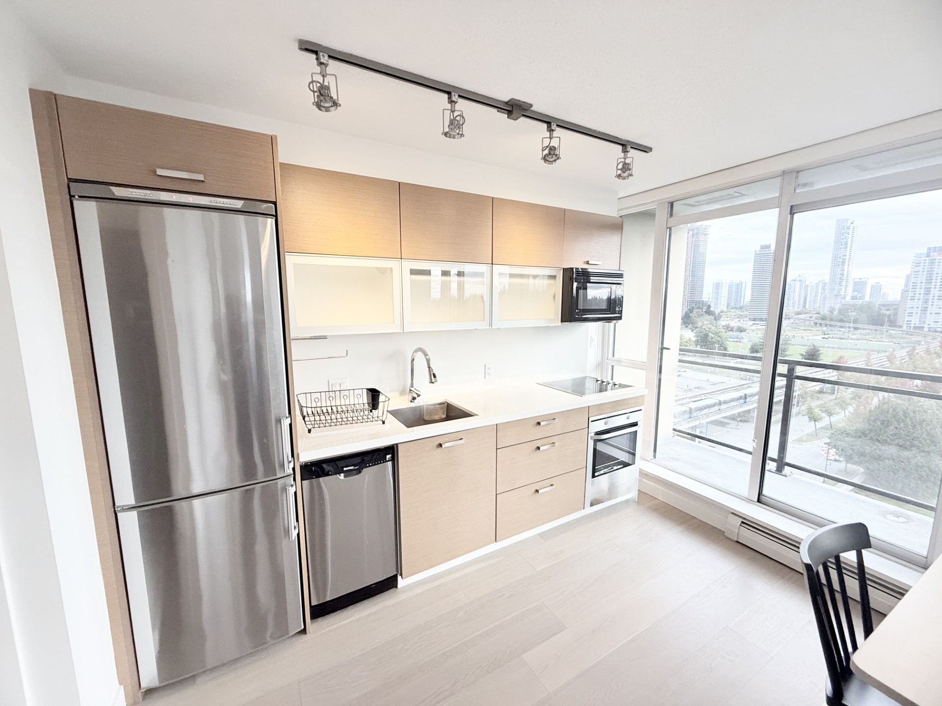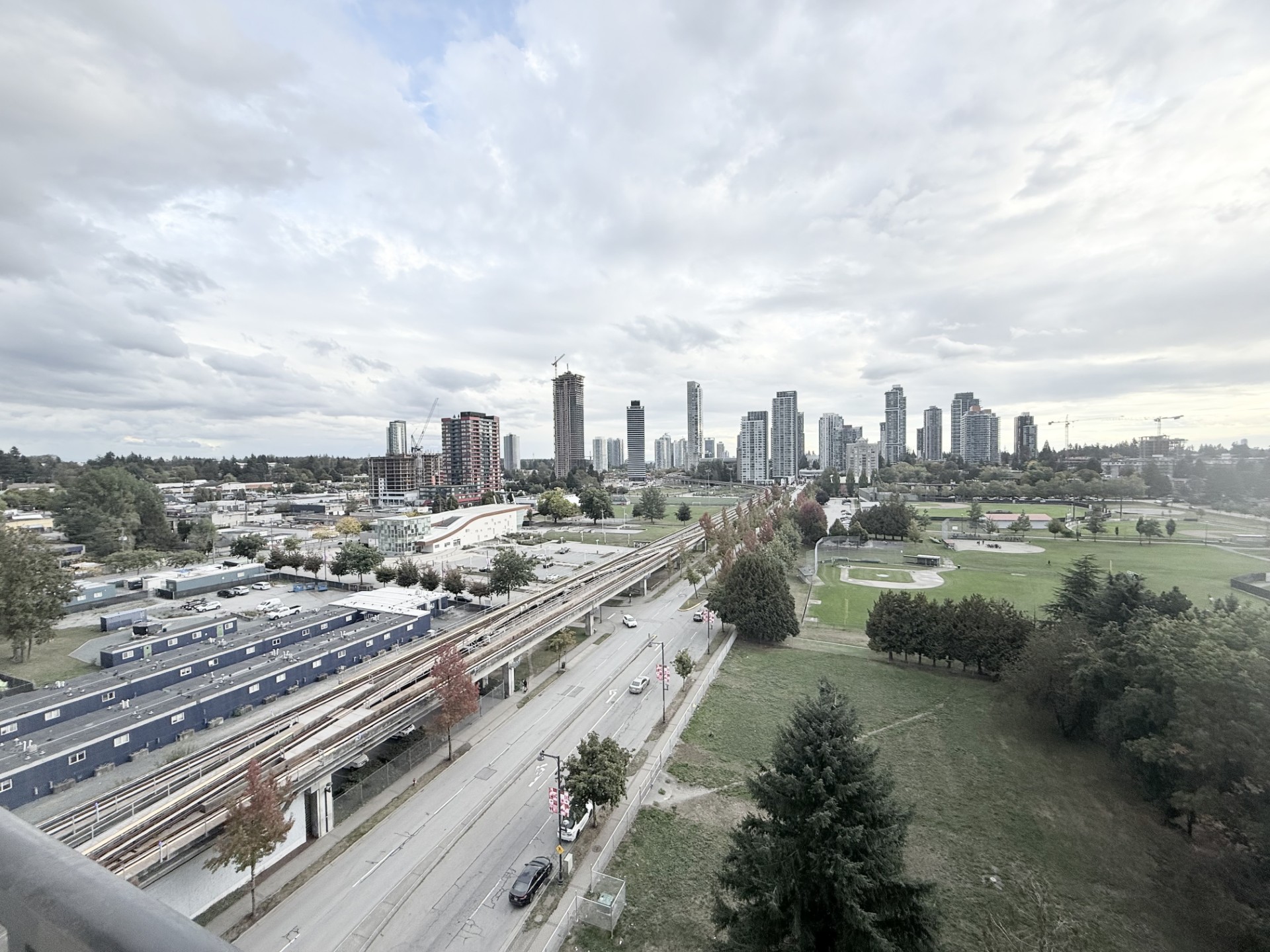 City Point. This one bedroom and den, one bathroom approx. 562 sq. ft. corner unit on the 13th floor, offers a spacious layout giving great space. Large floor to ceiling windows bring in natural light from multiple exposures with mountain, park and city views. This home features an open concept kitchen with wood cabinetry, quartz countertops, stainless steel appliances, in-suite laundry, and new flooring. Gateway Skytrain located across the street, walking distance to Surrey Central Shopping mall, public buses transportation, and SFU. Includes one parking stall and one storage locker. Building amenities include a gym, recreation centre, playground and plenty of visitor parking. Close to all that Central Surrey offers, including parks, Gateway Shopping Centre, SFU, KPU, City Hall & future Medical School as well as a barber, sushi restaurant, Fresh Slice Pizza, convenience store, and Waves Coffee shop at your doorstep. Tenant Insurance is required. No Pets. No smoking or vaping in the suite or on the balcony. $1775.00 per month plus utilities. Available Now. Rental Property Address: #1304-10777 University Drive. Property Manager: Naomi Johnson.