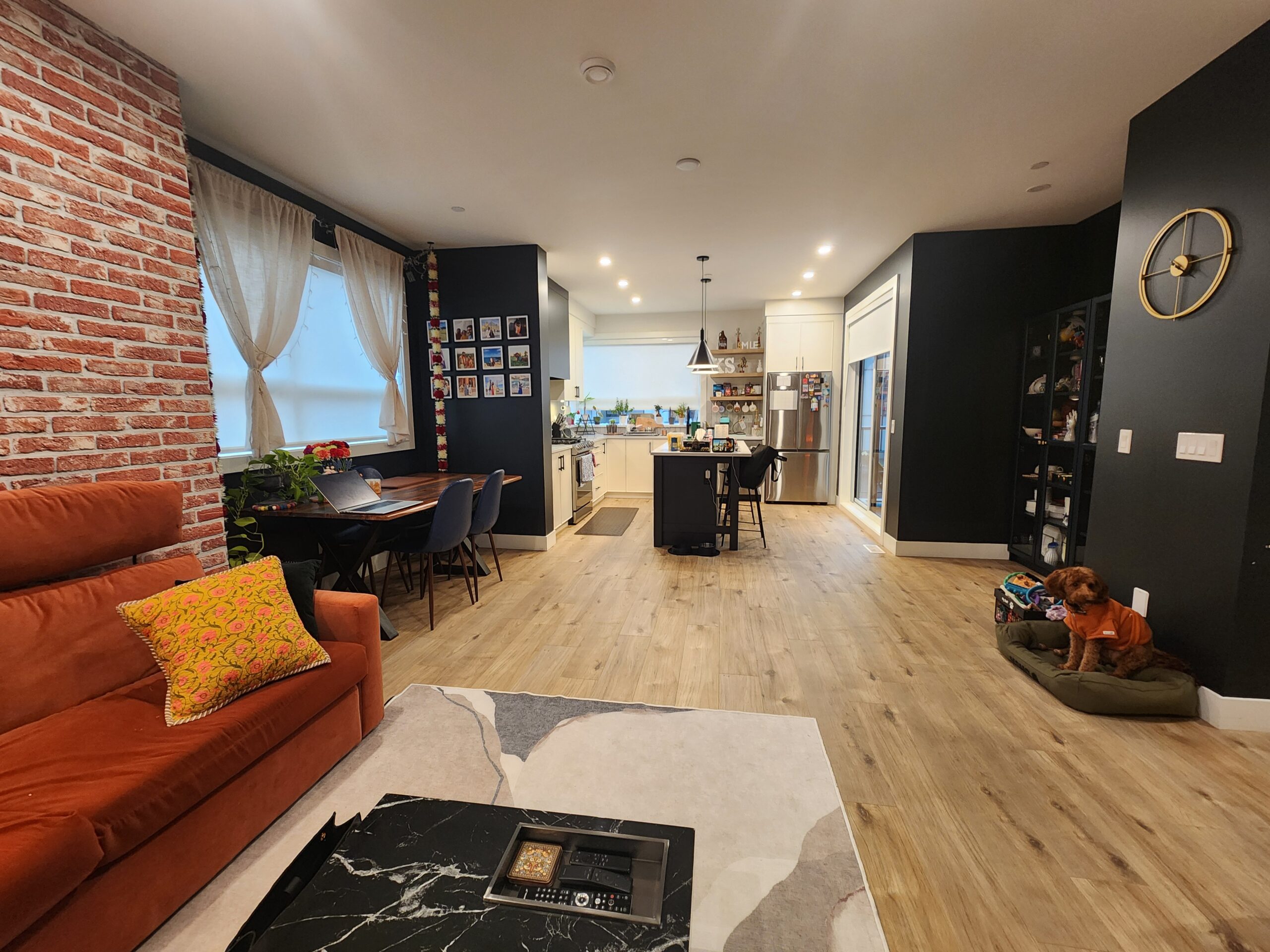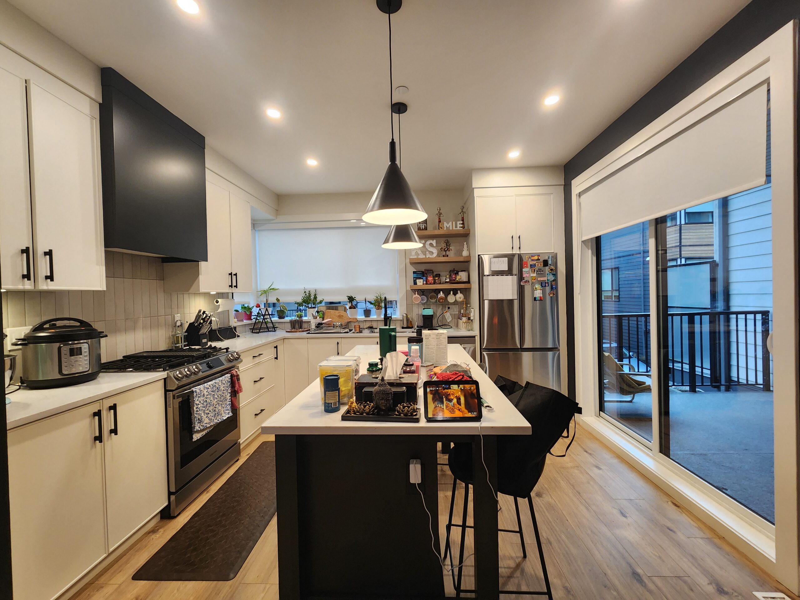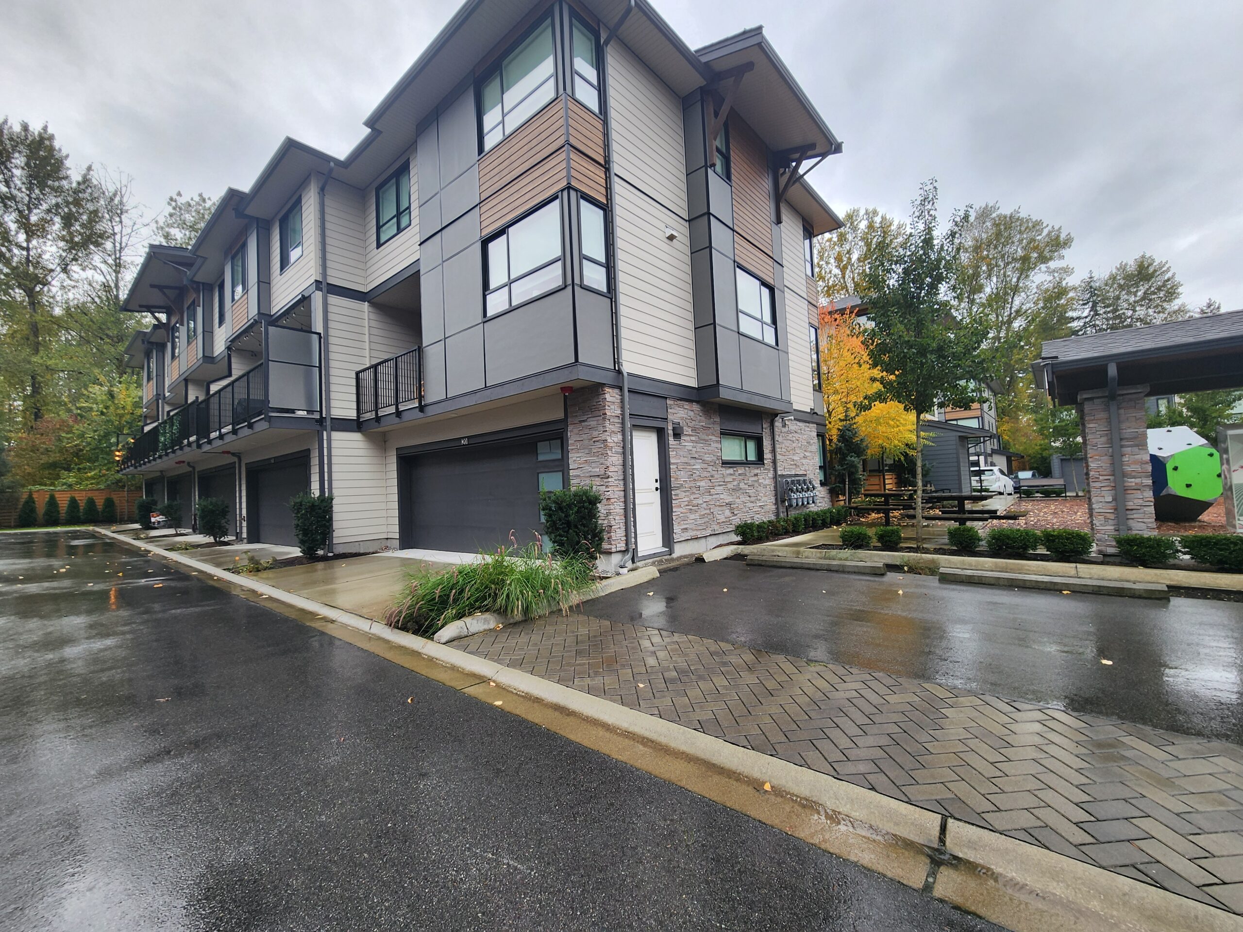 Wedgemont. A stunning and spacious 1640 sq. ft. approx. three bedroom and den Corner Unit townhouse in this sought after complex in Willoughby. On the ground level is a great size den, which could be used as a home office or guest bedroom and deep storage area. On the main level is a spacious family room, fitted kitchen with center island and gas range, covered deck and large powder room. This level also boasts a small area which could be used as a secondary home office. On the third level is a large primary bedroom with huge over sized walk in closet and full en suite bathroom, two further bedrooms, main bathroom and in suite laundry. The property boasts central A/C, a small front yard, double garage with an additional parking space in front of the garage and is enviably located in close proximity to the shopping and travel amenities of Willoughby, Langley and within a few minutes drive to Hwy 1. Dog in pictures not included in the tenancy! Tenant insurance is mandatory. A small pet maybe considered with landlord approval and pet deposit. No smoking or vaping. Available Nov. 20. Property Rental Address: 20-19918 75A Avenue. Property Manager: Veronica Sharma