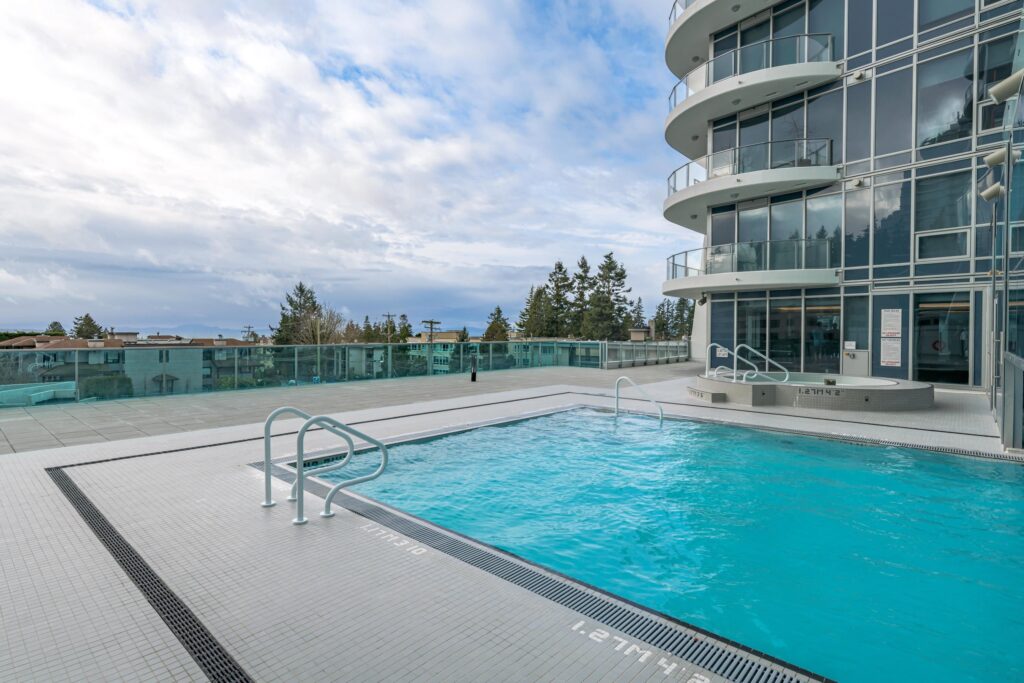 Bright, Ocean/Mountain Views with lots of natural light hugging in all corners of your home in this pristine 2-bedrooms/Den/2-bathrooms, 1,122 sq. ft. of sophisticated open-concept space on the 20th floor. Highlights: Spectacular panoramic views of the ocean and mountains from two private patios, Gourmet kitchen with premium built-in Miele appliance, gas fireplace. Spacious primary suite featuring an oversized walk-in closet, 5-piece ensuite, and room for a king-size bed, Year-round comfort with central air conditioning, Included: 2 underground parking stalls, Private storage locker, World-Class Amenities (over 10,000 sq ft). Indoor/outdoor pool, Hot tub, steam room, and sauna, fitness room. Prime Location: Just steps to, grocery stores, gyms, and vibrant shopping/dining,5 min drive to white rock beach. Small Pet Negotiable. Mandatory tenant insurance. No smoking or vaping. Rental Property Address: 2003-1500 Martin Street. Property Manager: Bernadine Nielsen.