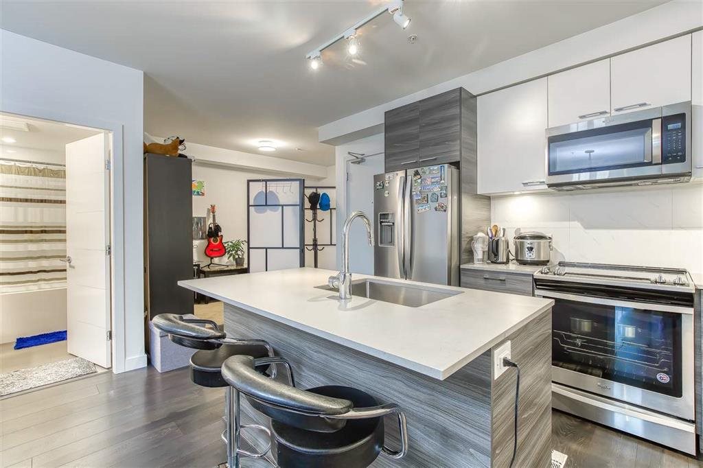Domain at HQ. This two bedroom, two bathroom with large flex area has approx. 1090 sq. ft. of interior living space on the second floor. This home features an open concept kitchen with island and plenty of cupboard space that is perfect for the home cook and also ideal for entertaining. Enjoy the luxury of laminate flooring throughout the living space with large windows to bring in natural light making every room bright, with nature views of mature trees and over looking the large neighboring dog park. Both bedrooms have plush carpet. The primary bedroom has his and her closets and a spa like ensuite bathroom with a spacious walk in shower. The second bedroom has a walk in closet. Enjoy morning coffee or evening bevies on the covered balcony year round. Full sized in-suite laundry as well. One secure underground parking stall that allows for two cars to park in tandum and one storage. Enjoy extensive building amenities including fitness and yoga studios, lounges and courtyard. Walking distance to Surrey Central SkyTrain, shopping, parks, and recreation. Pets may be considered with owner’s approval and a pet deposit. No smoking or vaping in the suite or on the patio. $2375.00 per month plus utilities. Available March 1st. Rental Property Address: 201-10603 140th Street. Property Manager: Naomi Johnson and Stefano Gismondi