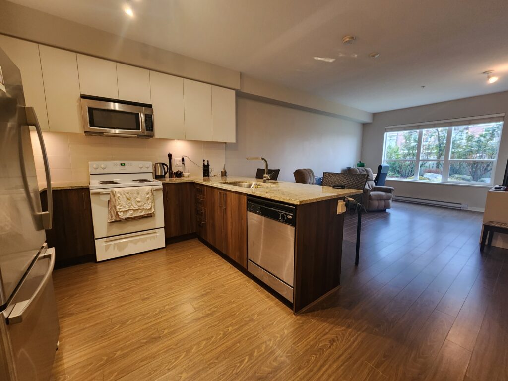 Waterstone. A bright and spacious 672 sq. ft. approx. one bedroom and den condo on the 2nd floor of this highly sought after development on the Surrey/Langley border. The accommodation consists of a great size lounge, fitted kitchen, primary bedroom, main bathroom, den which could be used as a home office or guest bedroom, in suite laundry and a great size covered patio. The apartment comes inclusive of one parking space, storage locker and boasts 15,000 sq ft of resort style amenities which include a pool, hot tub, games room, chefs kitchen, guest suites, outdoor fireside lounge and theatre. The complex is very conveniently located within minute’s walk of Willowbrook Mall and travel amenities. No pets. Tenant insurance is mandatory. No smoking or vaping. $1850.00 per month plus utilities. Available Feb. 1. Rental Property Address: 202-6440 194 Street. Property Manager: Naomi Johnson.