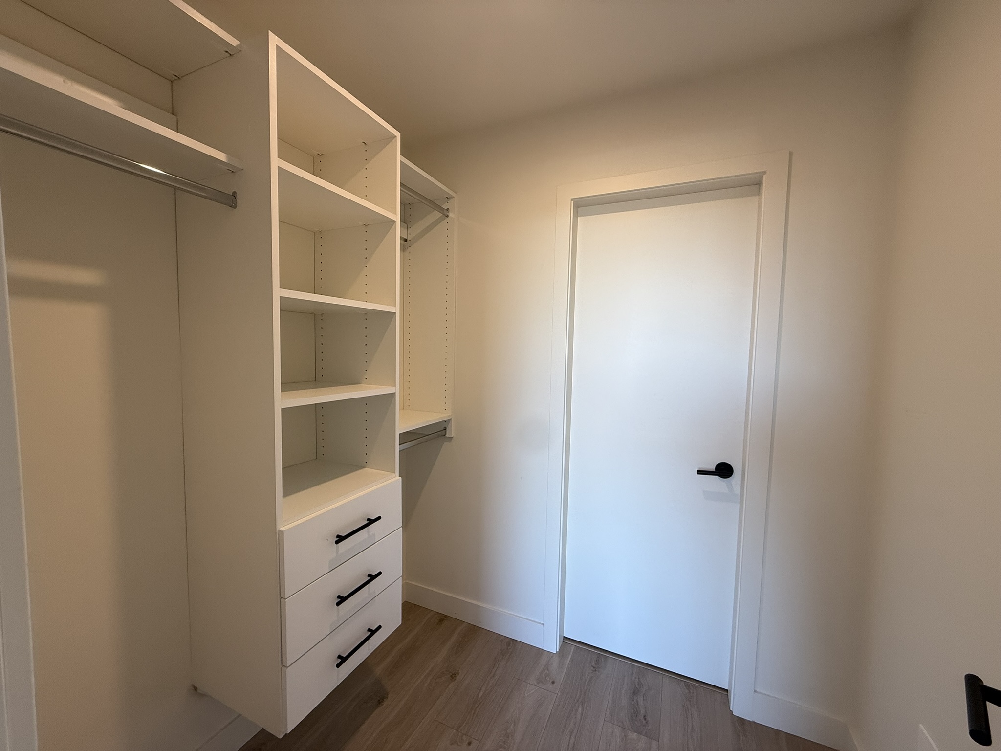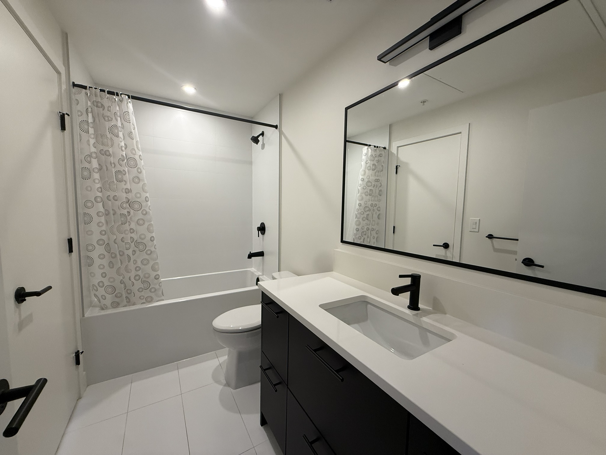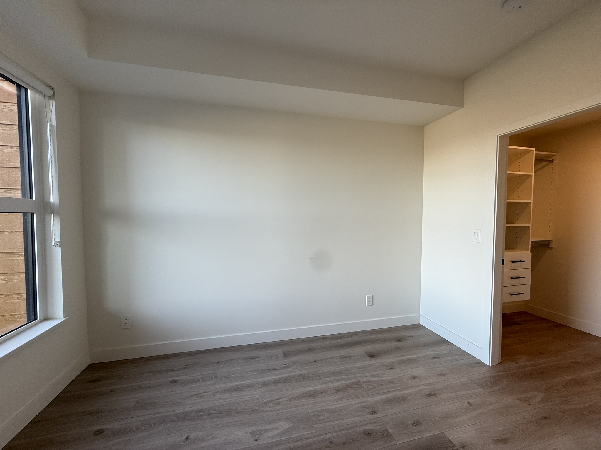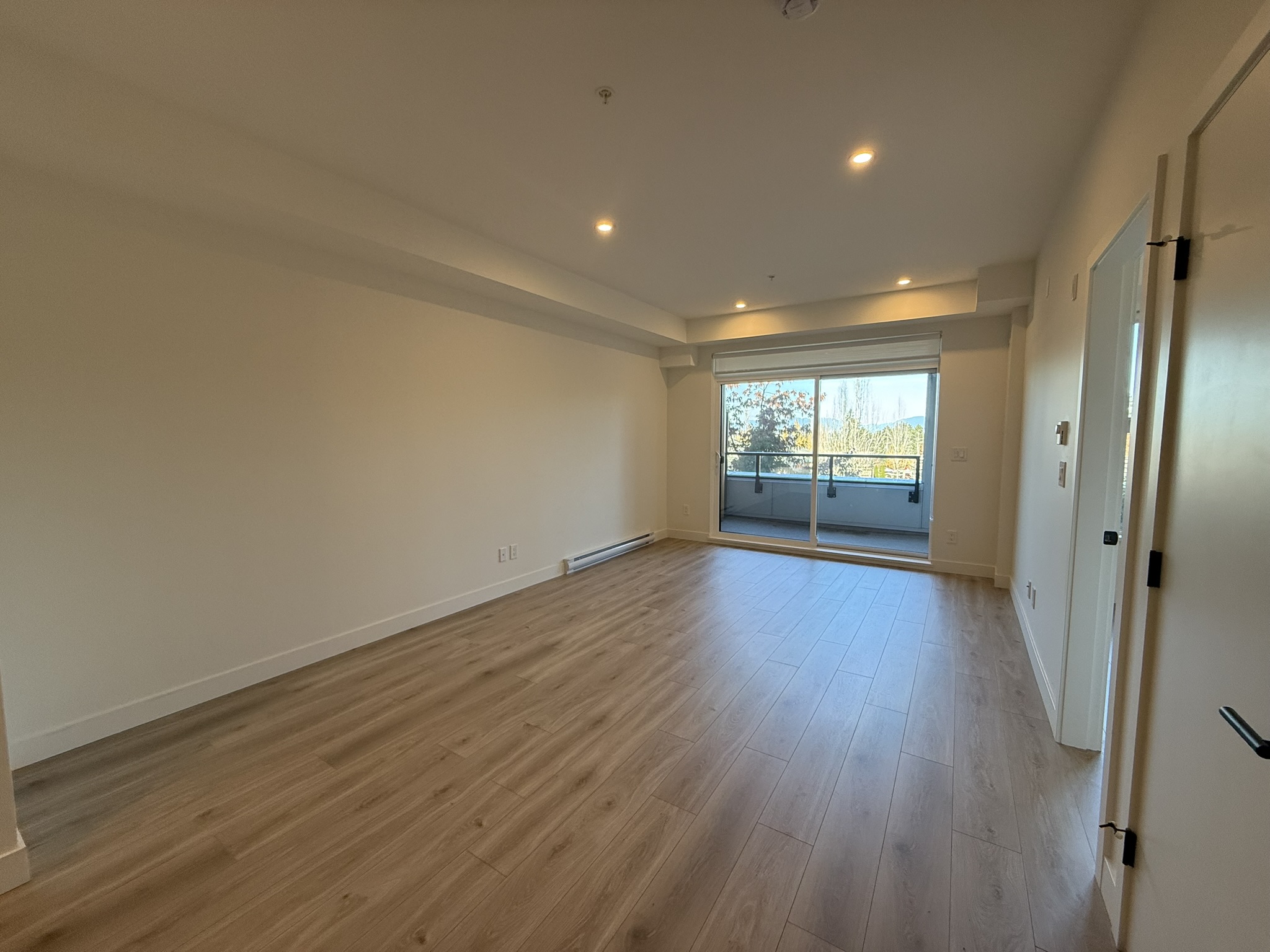 Odyssey, Brand New 1-Bedroom, 1-Bathroom, approx. 700 sq.ft. Interior Highlights: Open-concept, Full-sized stainless-steel appliances, black matte plumbing fixtures, white quartz counters with white tile backsplash, wide plank wood-grain laminate floors throughout, Whirlpool side-by-side washer & dryer in-suite, spacious bedroom with large walk-in closet, modern 4-piece bathroom with access from the bedroom and or kitchen. Private deck with serene views. State-of-the-art, Fitness Centre with sauna, fully equipped lounges, 24/7 security. Includes: 1 storage locker,1 parking, Bike storage available! Building Amenities: Sauna & steam room, Multiple resident lounges (perfect for remote work or entertaining), Rooftop patio (coming soon). Location Perks: Centrally located at King George Blvd & 152nd St, Steps to transit, shopping, restaurants, parks, and Easy access to Hwy 99 & major routes. Small pet negotiable. Mandatory insurance. No smoking or vaping. Rental Property Address: 212-2620 152 Street.Property Manager: Bernadine Nielsen.