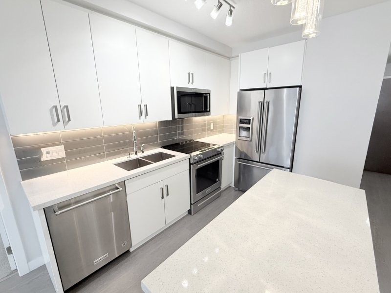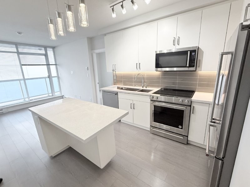 Delta Rise. Spacious and Bright, this one bedroom with flex room, one bathroom approx 530 sq. ft. home is on the 30th floor with panoramic city and mountain views. Plenty of living space with an open concept kitchen offering stainless steel appliances, flat top stove, quartz counters and island with an eating bar and plenty of storage. Off the living room is an extra-large covered balcony. The flex room can be used as an office or extra interior storage. The building has a full gym, large indoor amenity lounge, and expansive outdoor deck with BBQs, playground, and mini-golf. A short walk to Canadian Superstore, groceries, restaurants and entertainment. One parking stall and one storage locker included. Pets may be considered with owner’s approval and a pet deposit. No smoking or vaping in the suite or on the patio. $1850.000 per month plus utilities. Available now. Rental Property Address:3005-11967 80th Ave. Property Manager: Naomi Johnson.