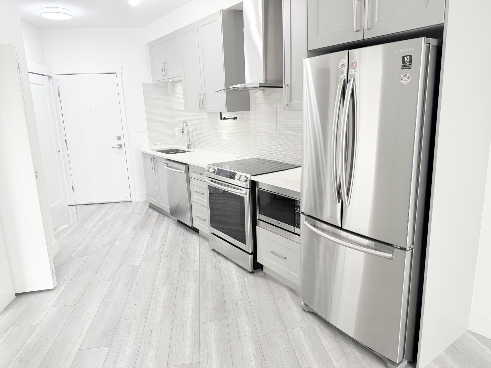 Fraser Landmark. Spacious and bright one bedroom, one bathroom approx. 526 sq. ft. home on the third floor has a good sized bedroom with access to the balcony, and a modern kitchen with quartz countertops and stainless steel appliances. Two parking stalls add convenience. The building offers a large gym and games area. Close proximity to the Jim Pattison Outpatient Care and Surgery Centre, Surrey Memorial Hospital, and walking distance to the nearby commercial/retail shopping area and King George Skytrain Station as well as just a short distance to the upcoming Skytrain Station. Tenant Insurance is required. One small dog may be considered with owner approval and pet deposit. No smoking or vaping in the suite or on the balcony. $2175.00 per month plus utilities. Available Now. Rental Property Address: #304-9689 140th Street. Property Manager: Naomi Johnson