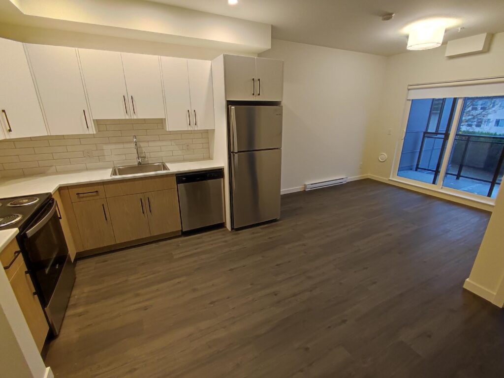 Spacious 1 bedroom and den at Central 48. Features include a large south facing balcony, communal roof top terrace with stunning mountain views, storage lockers on each floor, and in suite laundry. Appliances include stove, oven, microwave, refrigerator, dishwasher, washer, and dryer. Parking and storage available at extra cost. Centrally located in Abbotsford, this 700 sq. ft unit is located within a 5-minute drive to Seven Oaks Mall, Real Canadian Superstore, Canadian Tire, Save-On-Foods, Home Depot, Walmart Supercenter, University of the Fraser Valley, and various Restaurants and Shops. Quick access to Hwy #1, Hwy #11, South Fraser Way, Maclure Rd and Abbotsford International Airport. Rent: $1550/month plus utilities. Available February 1. No Smoking or Vaping. A small pet maybe considered with landlord approval and pet deposit. Property Rental Address: 305-33338 George Ferguson Way. Property Manager: Stefano Gismondi