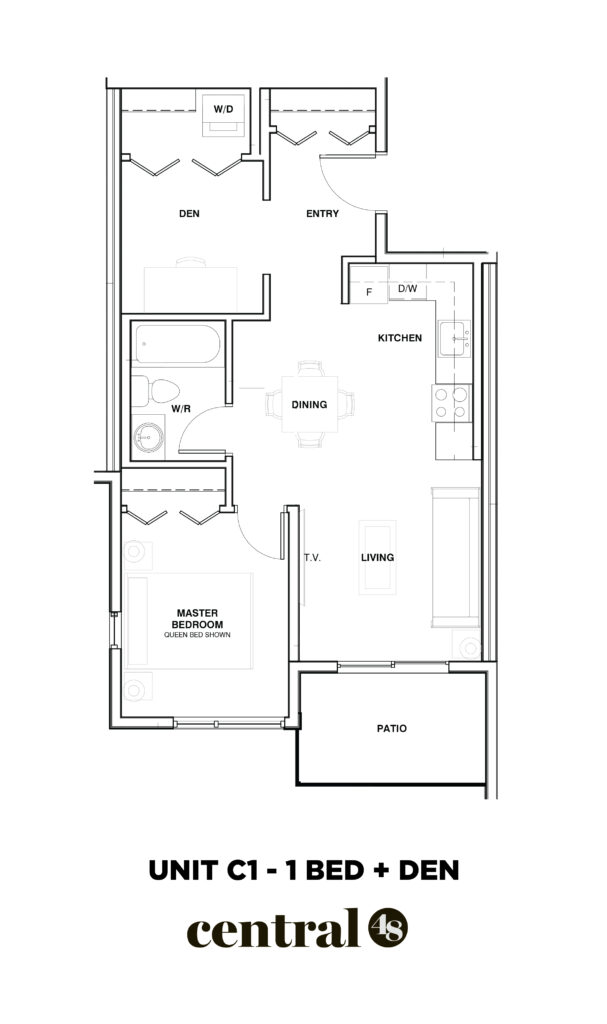 Central48. Spacious One Bedroom and Den