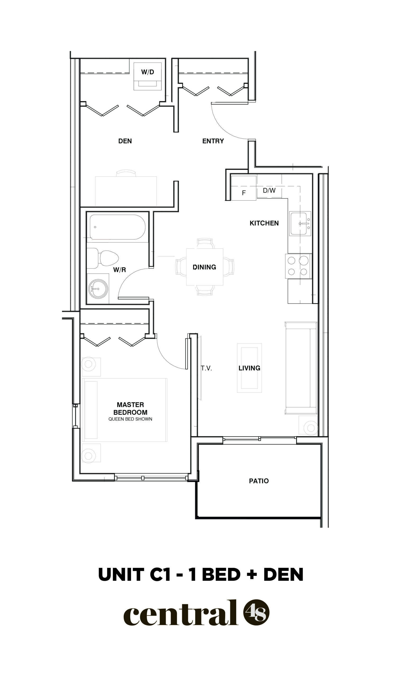 Central48. Spacious One Bedroom and Den
