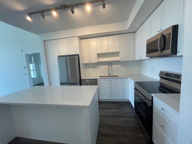 Step into luxury at The Grove rental building. Plan C is a spacious 871 sq. ft. 2 Bedroom plus Den, Face West side. Enjoy the timeless elegance of the generous ceiling heights and bright & large picture windows. It further boasts quartz counter tops, full-size Samsung appliances, including a 32” 3-door refrigerator. The Grove has amazing amenities that include Residents only Fitness Studio, Social Lounge and Kitchen, Guest Suite, Outdoor Amenity Area, and On Site Building Management. A small pet will be considered with Landlord Approval and Pet Deposit. Entire building is non-smoking/vaping. Tenant insurance is mandatory. $2400 Per Month. Available March 1. Rental Property Address: 307- 16633 24 Avenue. Property Manager: Jenny Chen.