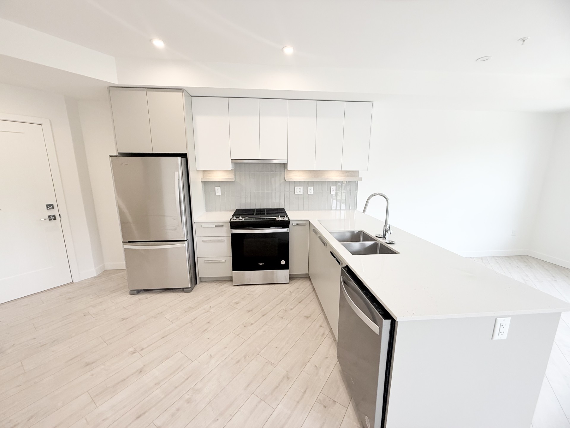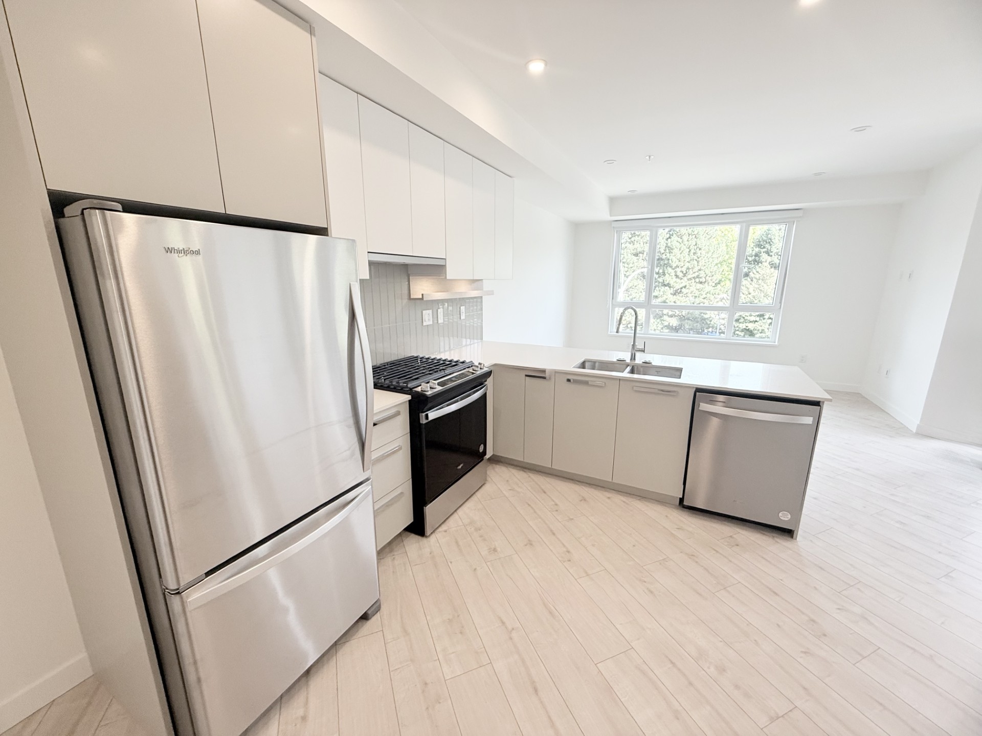 Silva 1. Bright and spacious one bedroom, one bathroom approx 575 sq. ft. home on the third floor overlooking Frank Hurt Park. Open concept kitchen with gas stove, quartz countertop, stainless steel appliances and lots of cupboard and counter space. Large windows in the living space and bedroom bring in plenty of natural light. The home offers wide-plank flooring, in-suite laundry, walk-in closet, and a built-in desk space. Breathtaking amenities include a modern courtyard, fitness center, co-working space, social lounges, community kitchen and much more. Walking distance to shopping including Costco, restaurants, entertainment and transit with easy access to the Skytrain route. One secure parking and one locker included. Tenant Insurance is required. Small pet may be considered with owner approval and pet deposit. No smoking or vaping in the suite or on the balcony. $1700.00 per month plus utilities. Available Now. Rental Property Address: #308-13788 76 Ave. Property Manager: Naomi Johnson