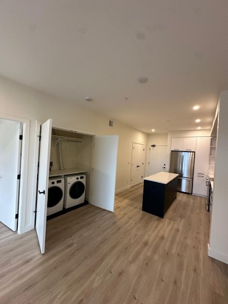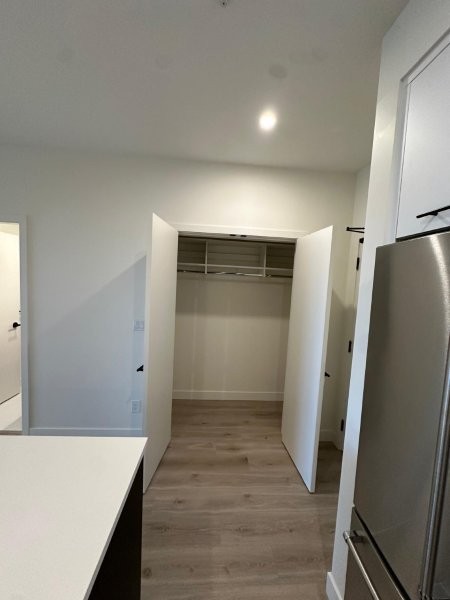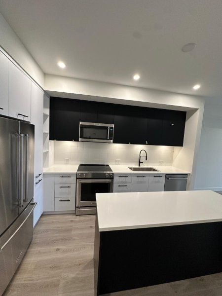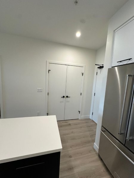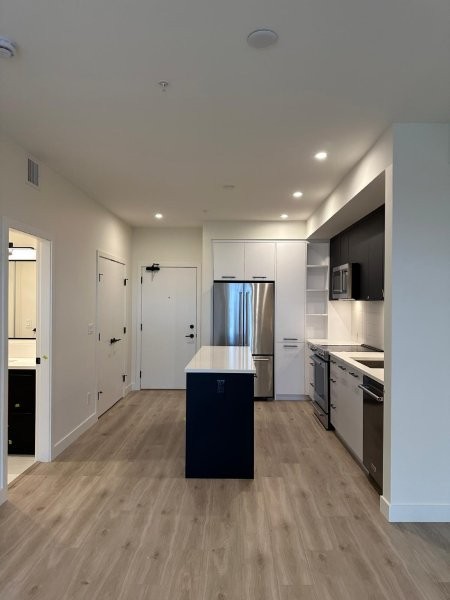 Discover modern comfort in this stunning brand-new 1-bedroom, 1-bathroom suite (approx. 770 sq. ft.) at Odyssey by award-winning Forge Properties. Interior features you’ll love: Bright open-concept layout with seamless living/dining/kitchen flow, premium full-sized stainless steel appliances, sleek black matte plumbing fixtures, crisp white quartz counters plus matching tile backsplash, wide-plank wood-grain laminate flooring throughout, in-suite full sized side by side washer/dryer. Generous bedroom with large walk-in closet, contemporary 4-piece bathroom with dual access (bedroom plus hallway/kitchen), private deck offering serene, peaceful views. Building Amenities: state-of-the-art fitness centre with sauna, multiple stylish resident lounges (ideal for remote work or hosting friends), 1 storage locker plus 1 parking stall included, bike storage available. Prime Location: Centrally situated at King George Blvd & 152nd Street in vibrant South Surrey. Steps to transit, shopping, restaurants, parks, and quick access to Hwy 99 and major routes. Everything you need is right at your doorstep. Additional Details: Tenant insurance mandatory. No smoking or vaping. Rental Property Address: 312-2620 152 Street. Property Manager: Bernadine Nielsen