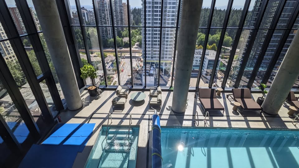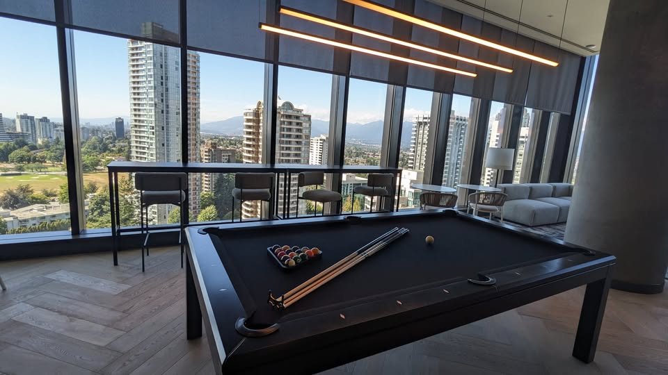 Central Park House. This Junior two bedroom, one bathroom approx 627 sq. ft. condo on the 40th floor offers floor-to-ceiling windows to bring in maximum brightness and has panoramic city, Central Park and mountain views to enjoy from the living space and main bedroom or from the extended balcony. The open concept kitchen has a gas range, good counter space and plenty of cupboard storage. The main bedroom has lots of light and a built in cupboard to fit around a queen sized bed. The second room that is located by the condo entrance is smaller for a small bed or to be used as a den. The bathroom is elegant with a deep soaker tub and lighting in the large mirror cabinet. The suite also has central air to keep you at the perfect temperature year round. The building boasts world-class amenities featuring a double ceiling height heated indoor swimming pool, elegant club lounge with pool table, full concierge service, dog run area, playground and over 2,000 sf fitness centre. Conveniently located around the corner from Central Park, Skytrain, restaurants and shopping. One secured parking and one storage locker included. Tenant insurance required. No smoking or vaping in the suite or on the balcony. A small pet maybe considered with landlord approval and pet deposit. $2850.00 per month plus utilities. Rental Property Address: 4006-5987 Wilson Ave. Property Manager: Naomi Johnson