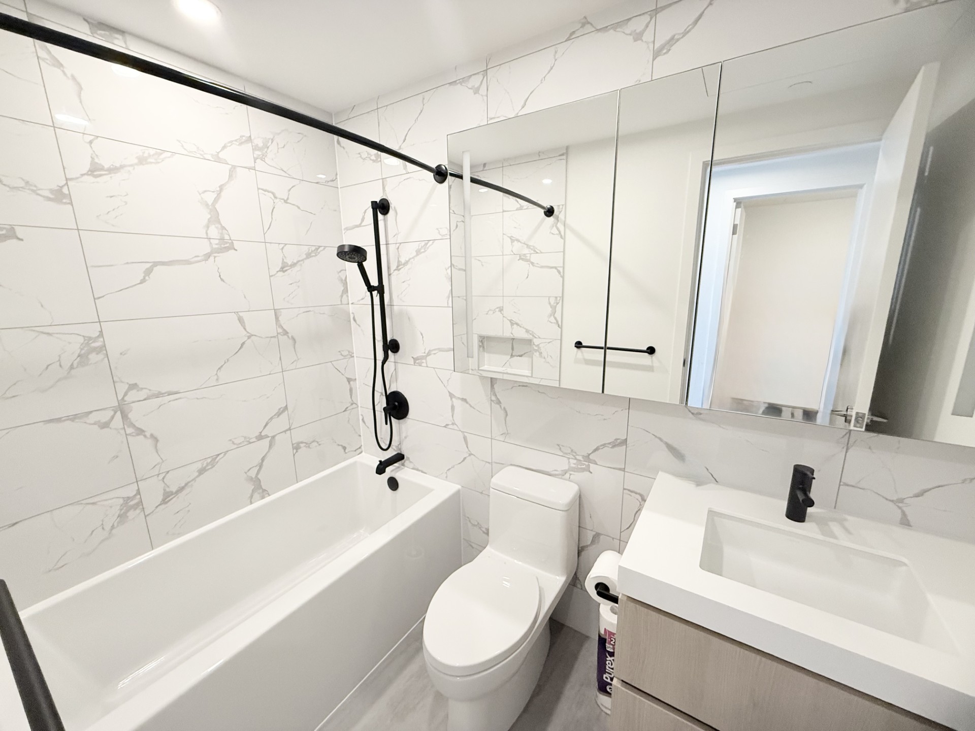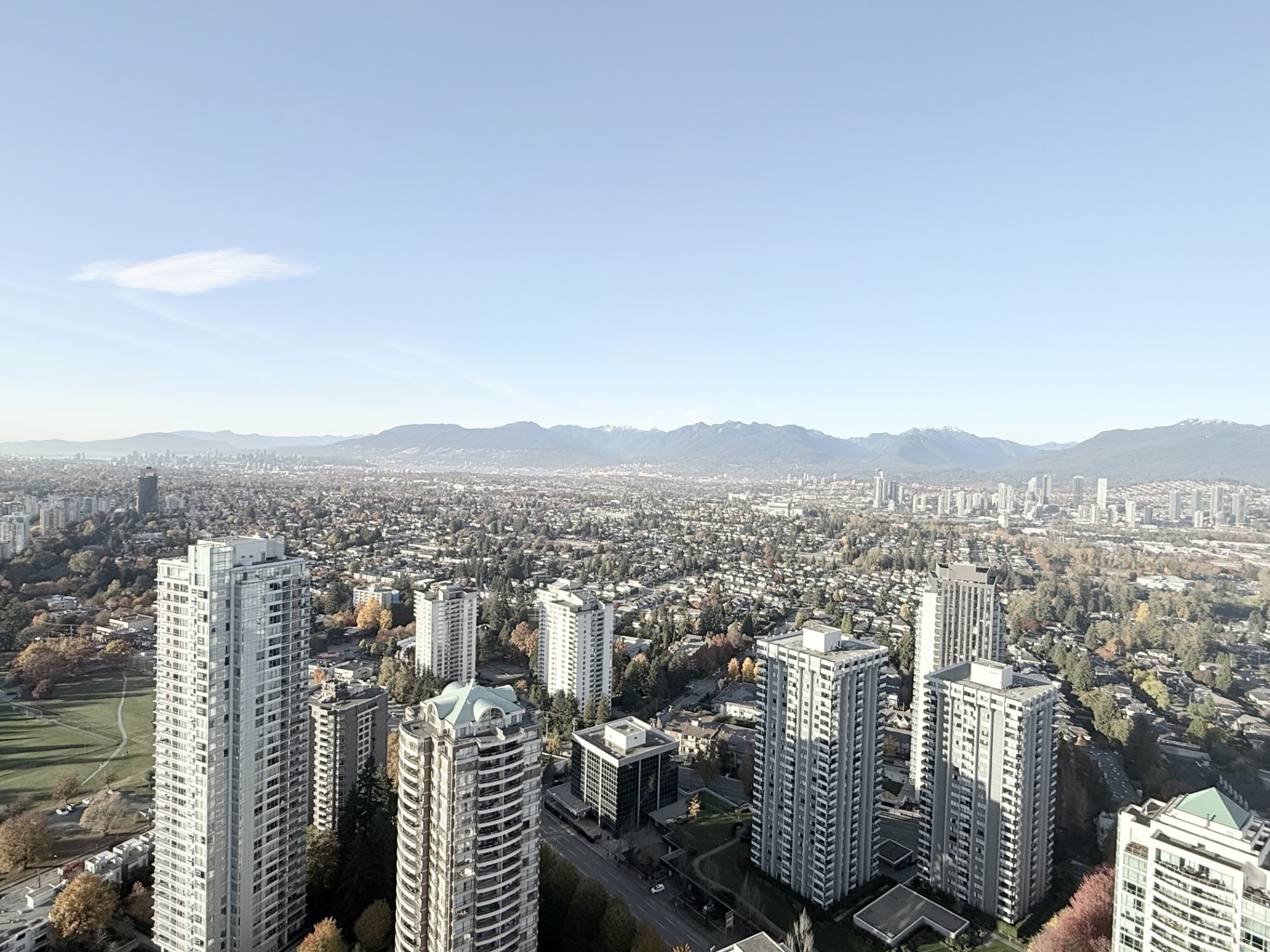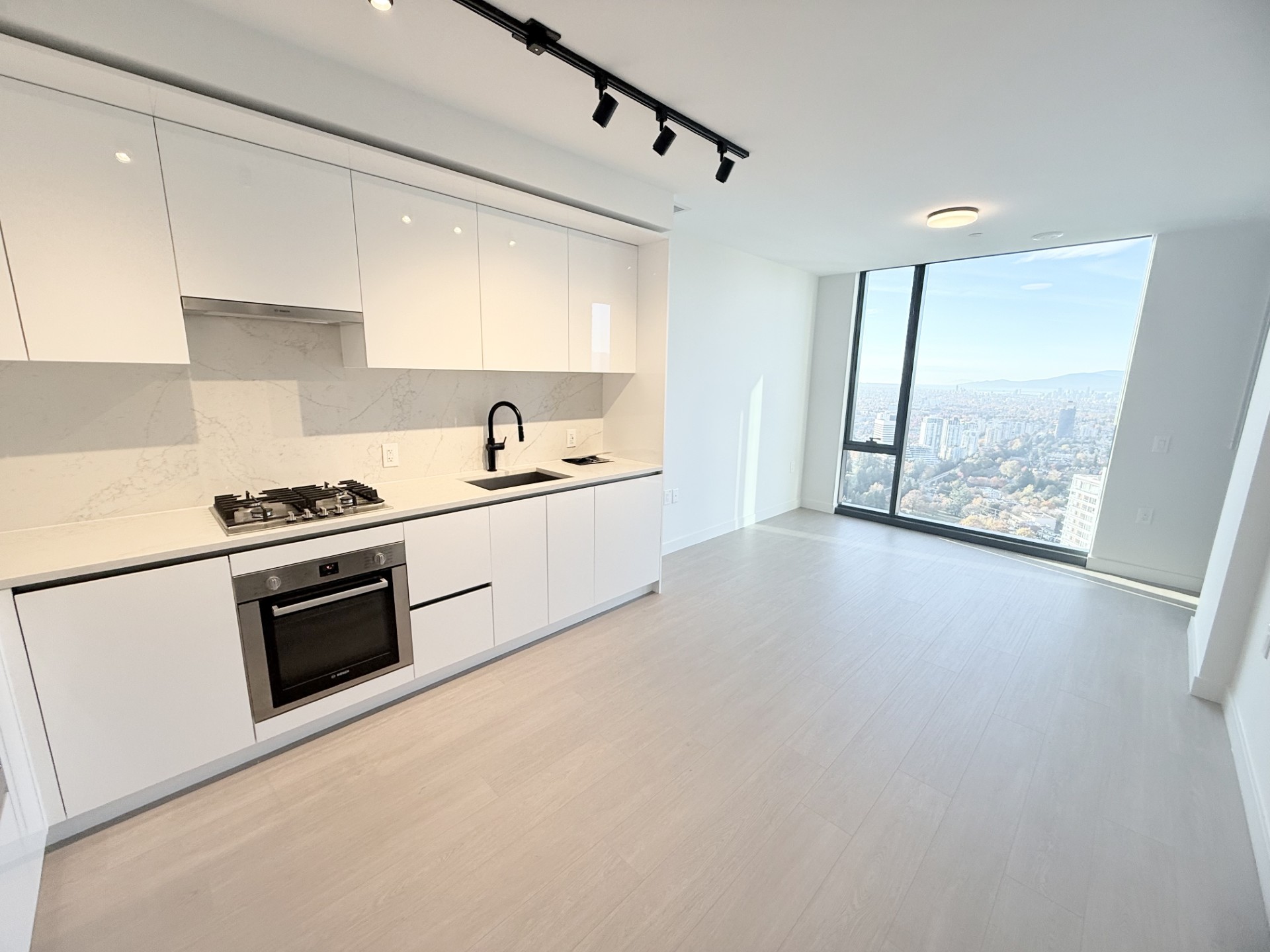 Central Park House. This Junior two bedroom, one bathroom approx 627 sq. ft. condo on the 40th floor offers floor-to-ceiling windows to bring in maximum brightness and has panoramic city, Central Park and mountain views to enjoy from the living space and main bedroom or from the extended balcony. The open concept kitchen has a gas range, good counter space and plenty of cupboard storage. The main bedroom has lots of light and a built in cupboard to fit around a queen sized bed. The second room that is located by the condo entrance is smaller for a small bed or to be used as a den. The bathroom is elegant with a deep soaker tub and lighting in the large mirror cabinet. The suite also has central air to keep you at the perfect temperature year round. The building boasts world-class amenities featuring a double ceiling height heated indoor swimming pool, elegant club lounge with pool table, full concierge service, dog run area, playground and over 2,000 sf fitness centre. Conveniently located around the corner from Central Park, Skytrain, restaurants and shopping. One secured parking and one storage locker included. Tenant insurance required. No smoking or vaping in the suite or on the balcony. A small pet maybe considered with landlord approval and pet deposit. $2850.00 per month plus utilities. Rental Property Address: 4006-5987 Wilson Ave. Property Manager: Naomi Johnson