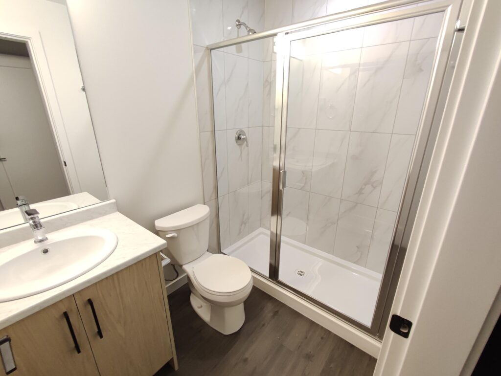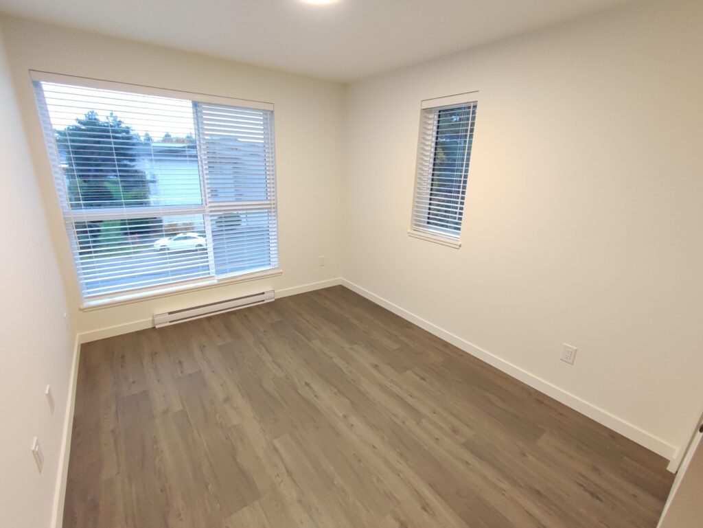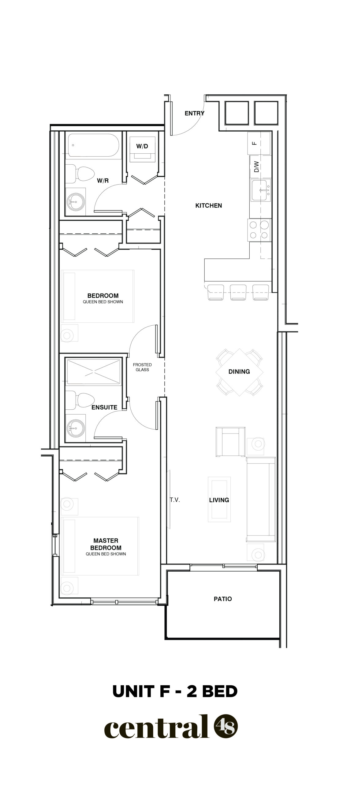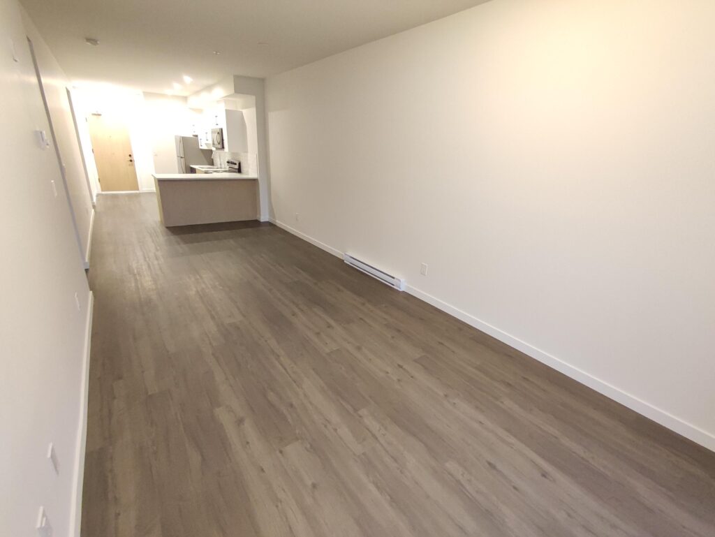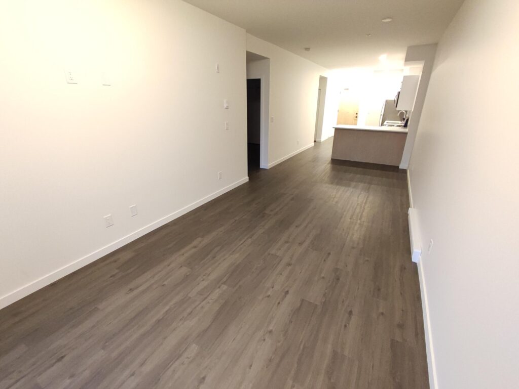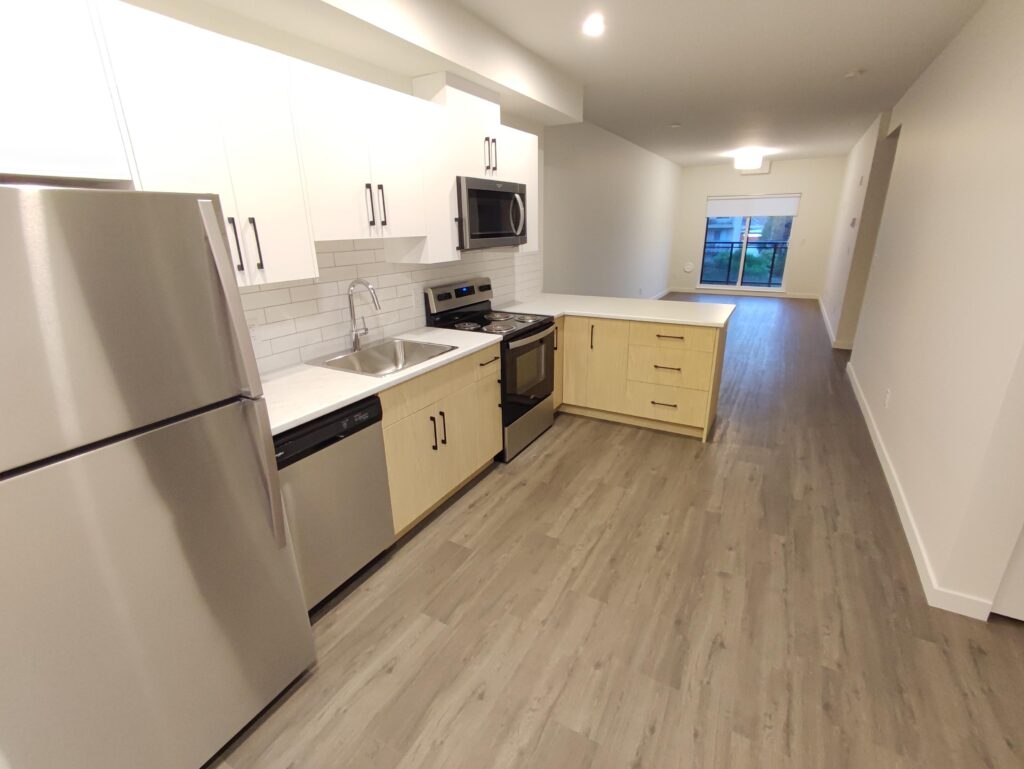 Spacious dining and living area in this 2-bedroom, 2-bathroom unit at Central 48. Centrally located in Abbotsford, this south facing, approximately 851 sq/ft unit boasts a spacious layout, sliding doors leading onto a large private balcony, large kitchen peninsula with space for up to 4 stools, in suite laundry, and stainless-steel appliances including refrigerator, dishwasher, stove and oven. Located within a 10-minute drive to Seven Oaks Mall, Real Canadian Superstore, Canadian Tire, Save-On-Foods, Home Depot, Walmart Supercentre, University of the Fraser Valley, and various Restaurants and Shops. Quick access to Hwy #1, Hwy #11, South Fraser Way, Maclure Rd., and Abbotsford International Airport. Parking stall and storage locker available. Available May 1. No smoking or vaping. Pets’ negotiable. $1800/month plus utilities. Rental address: 406-33338 George Ferguson Way. Property Manager: Stefano Gismondi