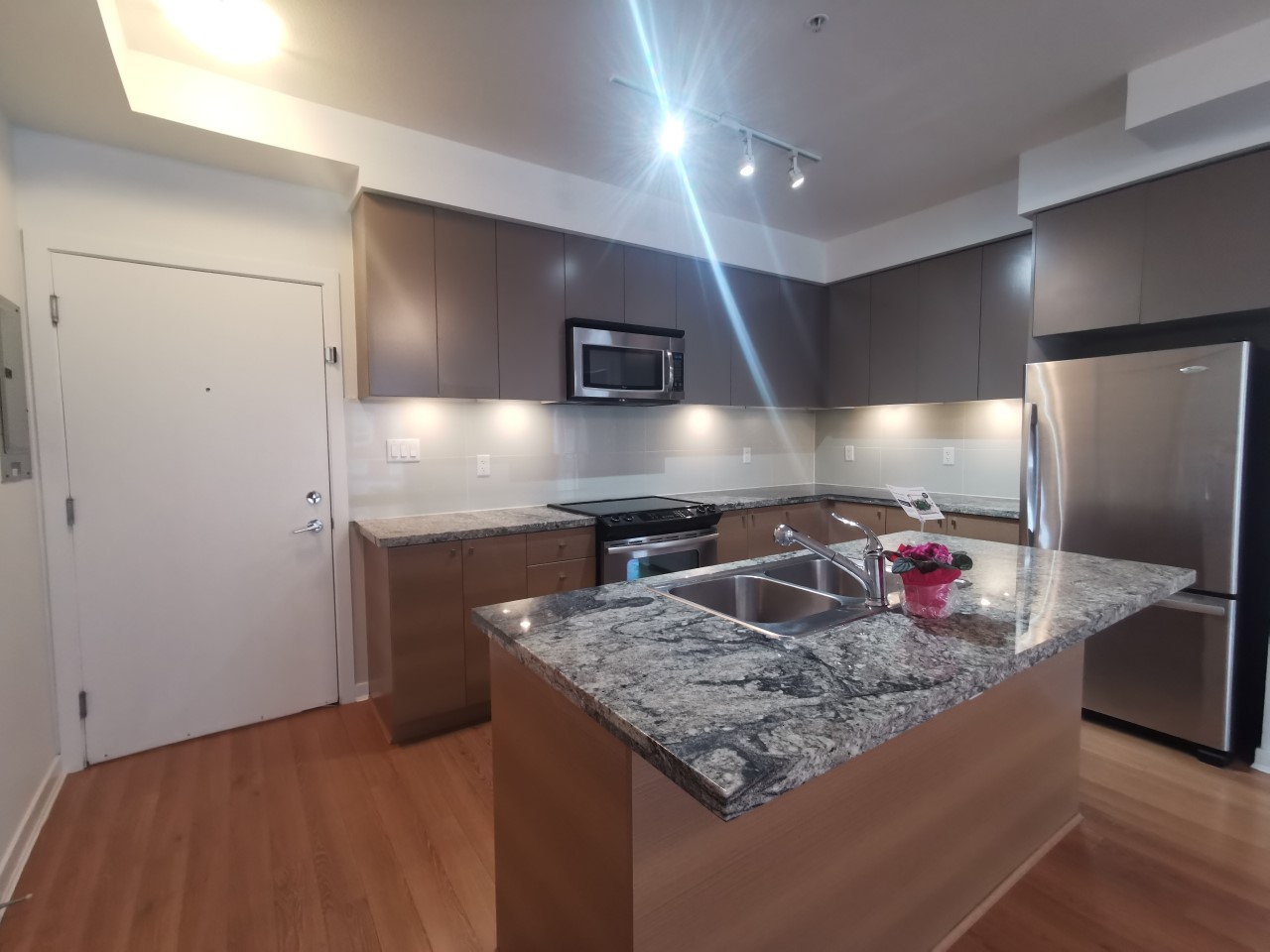 Waterstone. A bright and spacious 800 sq. ft. approx. two bedroom condo on the 4th floor of this highly sought after development on the Surrey/Langley border. The accommodation consists of a lounge, fitted kitchen, primary bedroom with en suite bathroom, additional bedroom, main bathroom, in suite laundry and a great size deck. The apartment comes inclusive of one parking space, storage locker and boasts 15,000 sq ft of resort style amenities which include a pool, hot tub, games room, chefs kitchen, guest suites, outdoor fireside lounge and theatre. The complex is very conveniently located within minute’s walk of Willowbrook Mall and travel amenities. A small pet maybe considered with landlord approval and pet deposit. Tenant insurance is mandatory. No smoking or vaping. $2200.00 per month plus utilities. Available March 1. Rental Property Address: 415-6440 194 Street. Property Manager: Veronica Sharma.