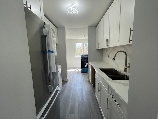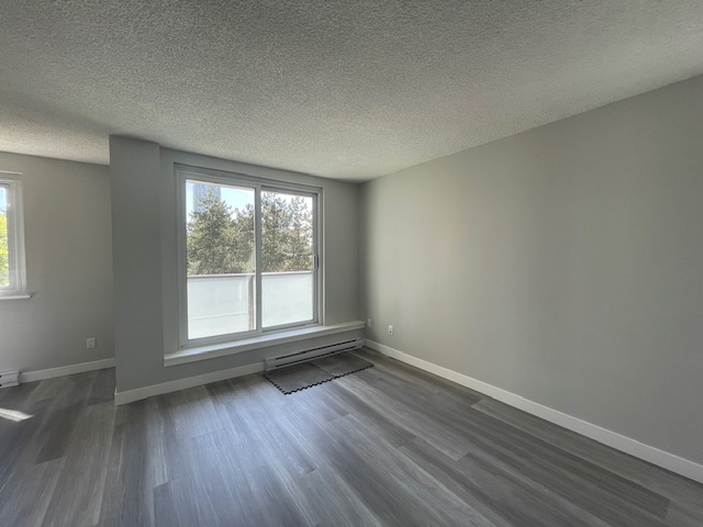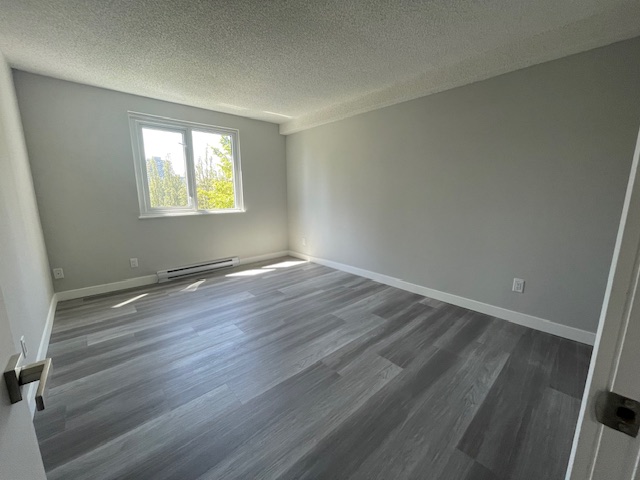 Erickson Tower. Two bedroom, one bathroom approx 700 sq. ft. corner unit home on the sixth floor overlooking mature tree lined street. Spacious rooms with large windows bringing in natural light, an updated modern kitchen offering stainless appliances and plenty of cupboard space. Freshly painted throughout. Only a few steps to shopping centers, Walmart, London Drugs, restaurants, coffee shop, skytrain station, and much more. One secure parking stall and storage locker included. Shared laundry with reasonable pricing. Tenant Insurance is required. No Pets. No smoking or vaping in the suite or on the balcony. $2400.00 per month plus utilities. Available Now. Rental Property Address: #603-9541 Erickson Drive. Property Manager: Naomi Johnson