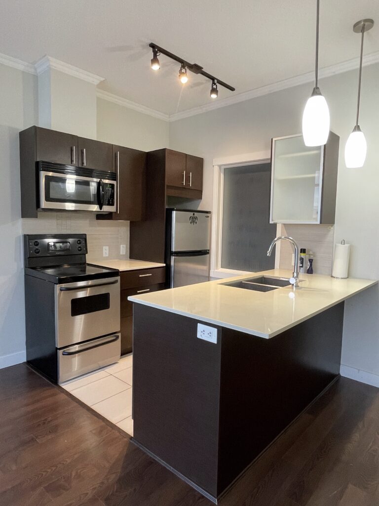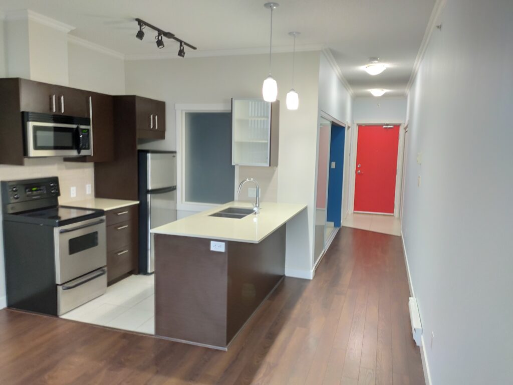 Cozy 1-bedroom, 1-bathroom suite, on the 8th floor in D’Corize. Only a 6-minute walk to Surrey Central Skytrain Station. Features include hardwood floors, stainless steel appliances, and east facing balcony. Enjoy the stunning city and mountain views from the balcony and living room. Conveniently located close to Central City Mall, North Surrey Recreational Centre and Library, Safeway, London Drugs, Real Canadian Superstore, T & T Supermarket, and various Restaurants and Shops. Easy access to Hwy #1, Hwy #17, Fraser Highway, and the Patullo Bridge. Building amenities include a media centre, party room, activity room with pool table, and fitness centre. No smoking or vaping. No pets. Includes 1 parking spot and 1 storage locker. Available December 15. $1600/Month. Property Rental address: 803-13399 104 Ave. Property Manager: Stefano Gismondi